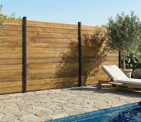 La lame CLASSIQUE en bois offre un design épuré et intemporel. Son aspect naturel et sa finition soignée s’intègrent parfaitement à tous les extérieurs, pour une occultation sobre et élégante.